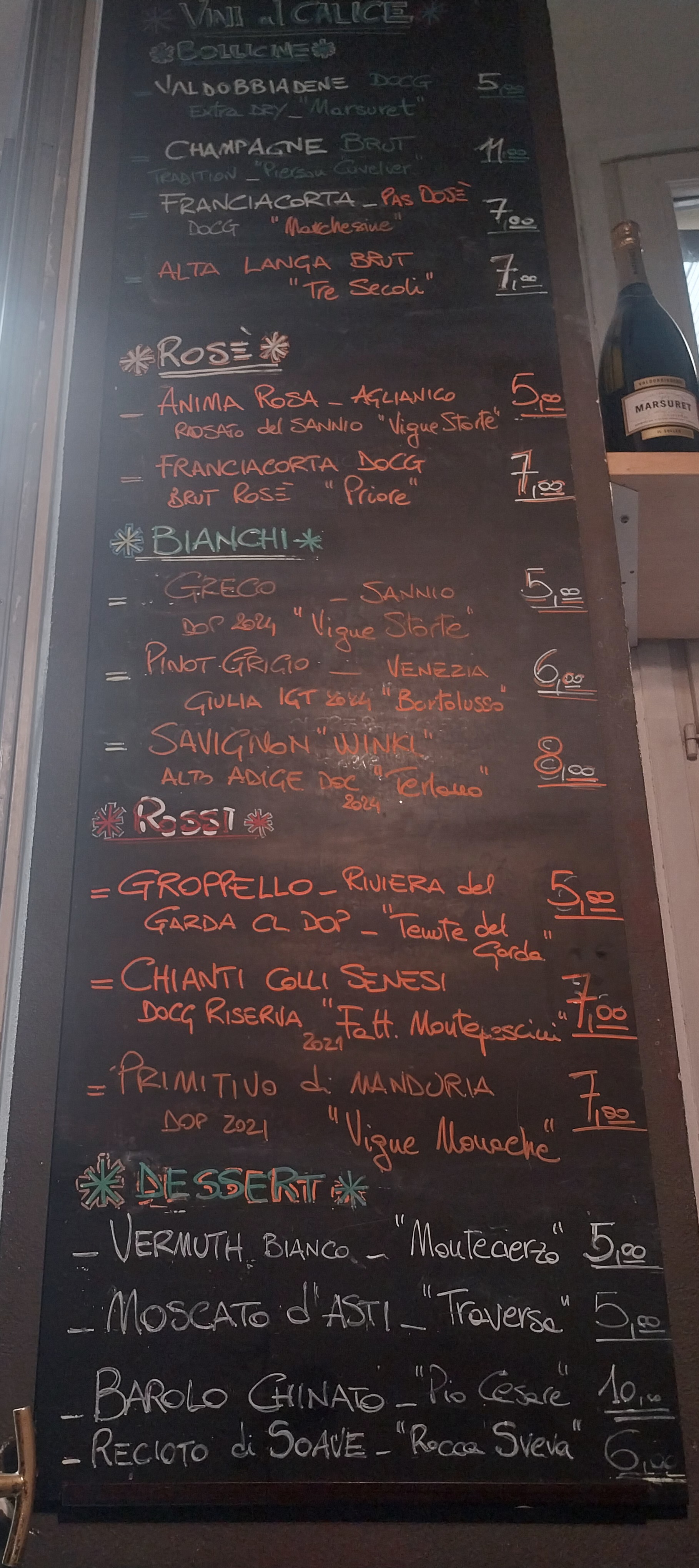 Un'ottima selezione di Vini al calice, in Bottiglia e da Asporto,